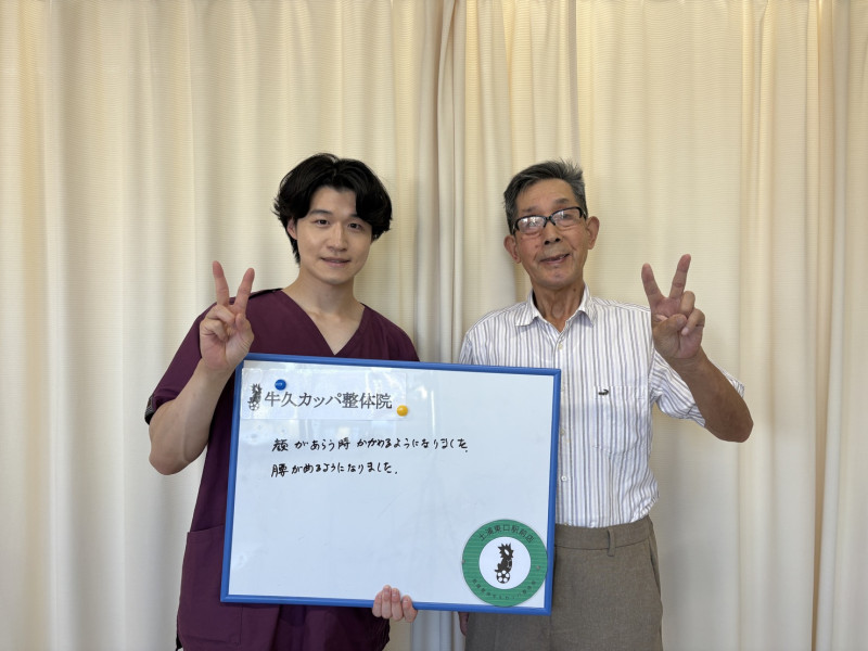 Q、あなたと同じような症状でお悩みの皆様へメッセージがありましたら教えてください。 A、迷ったらまず、牛久カッパ整体院へ電話!